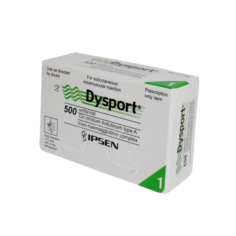 Dysport 500 U lyophilized powder for injection to treat muscle spasms contains Clostridium botulinum type A toxin complex, which is effective in treating torticollis, eyelid spasms, hemifacial spasms, wrinkles between the eyebrows, and as an adjunct to physical therapy to reduce upper limb spasticity after stroke…